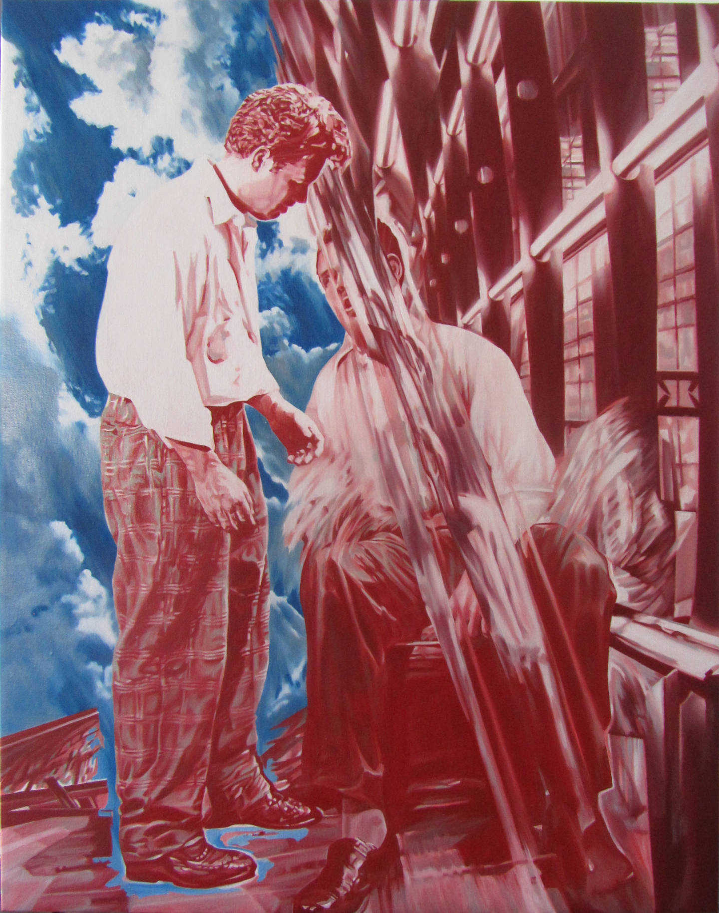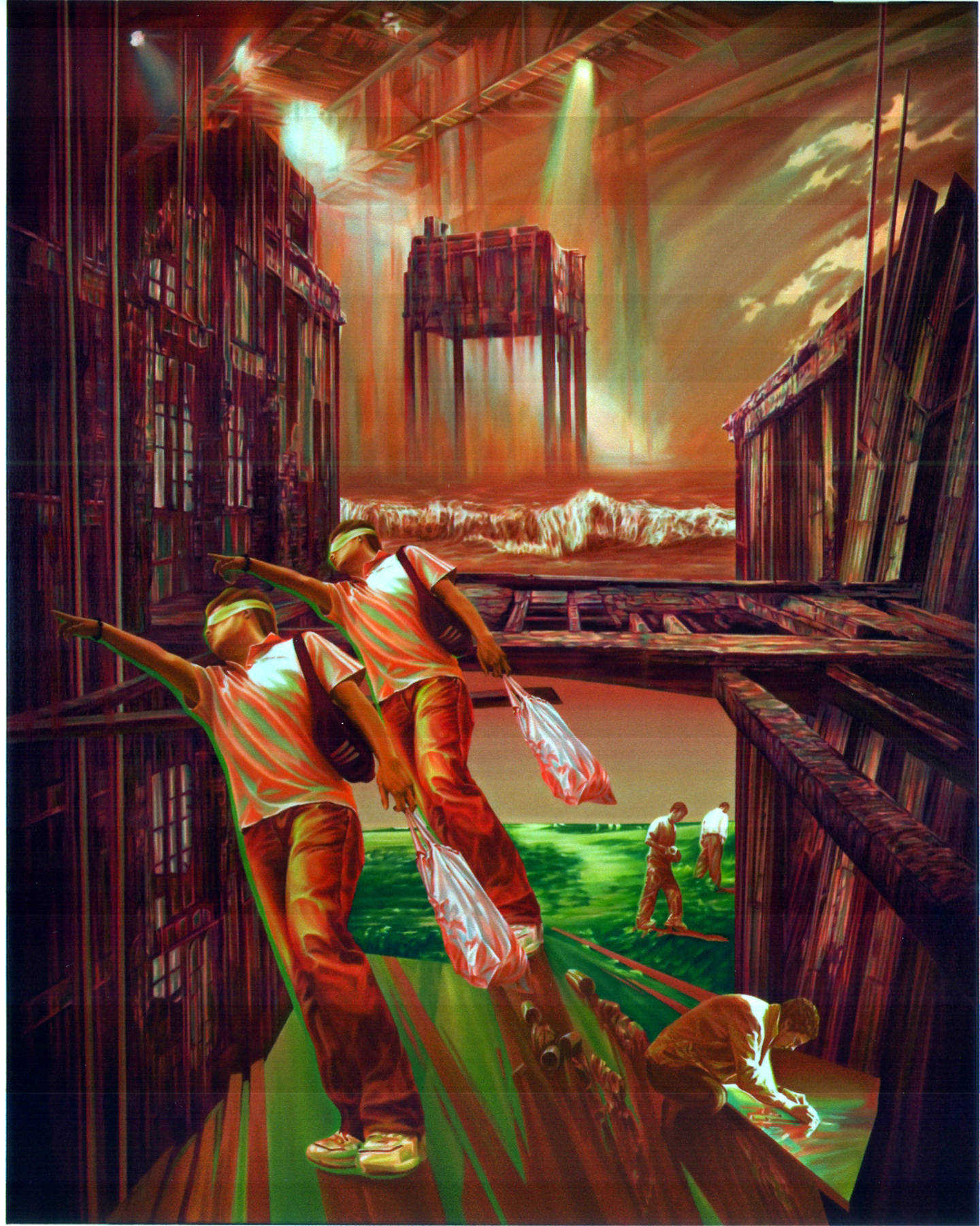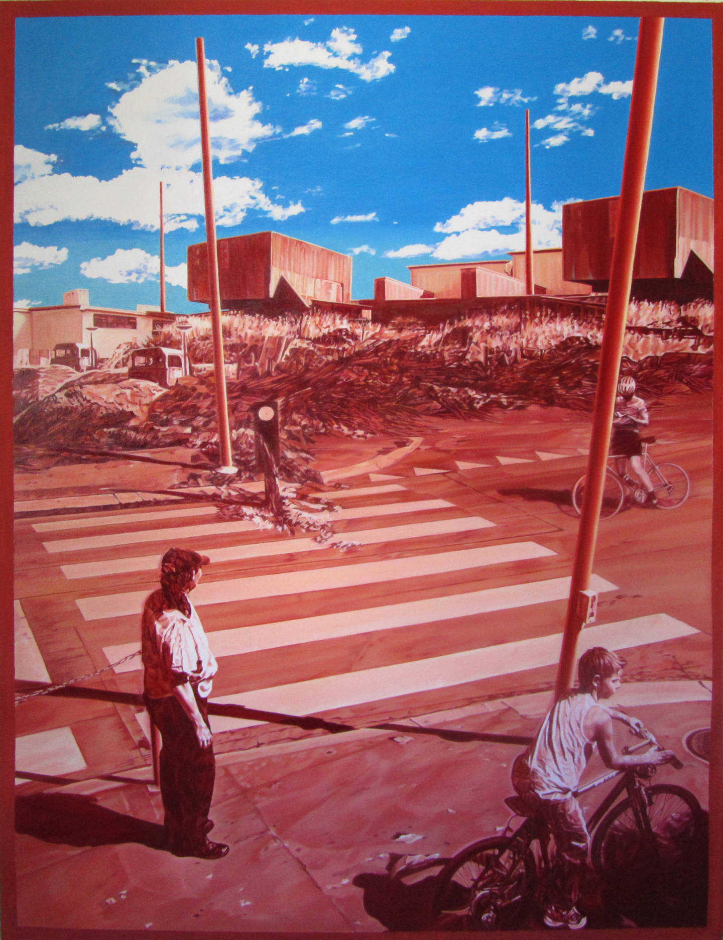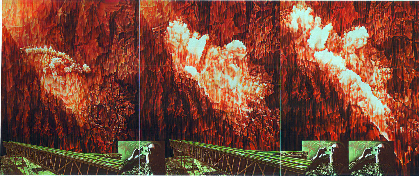 Reales und Nichtreales durchdringen sich. Eine Neigung des Bodens, die Schwerelosigkeit einer Glaswand... alles verdeutlicht uns die Relativität der Dinge, sogar die Landschaft ist nicht mehr eindeutig. Beinhaltet sie eine latente Katastrophe?