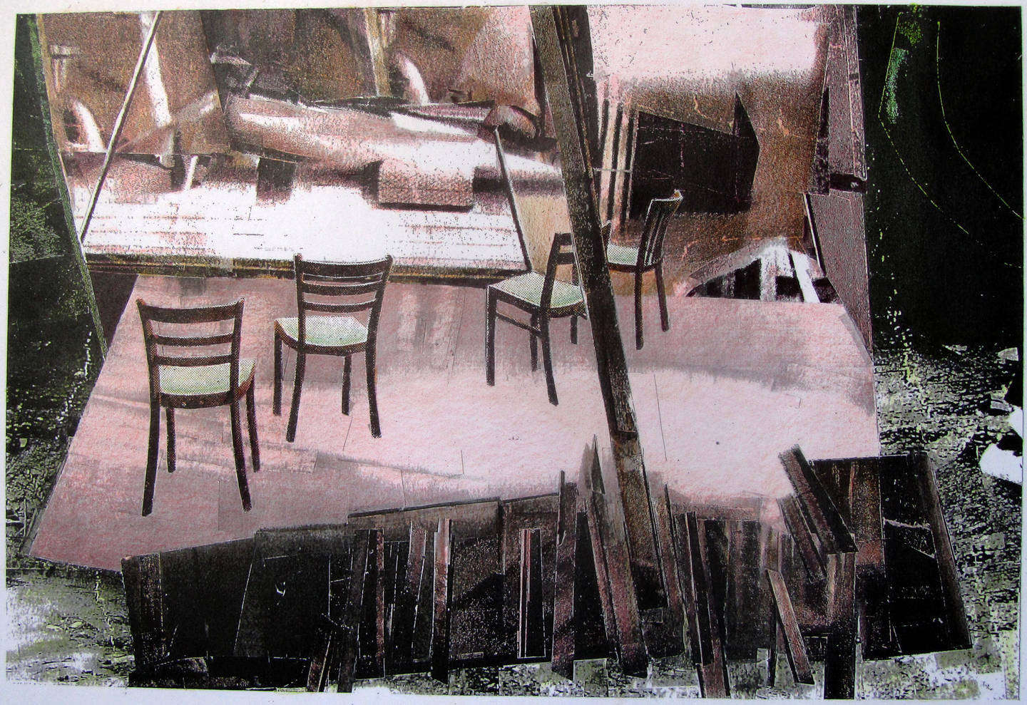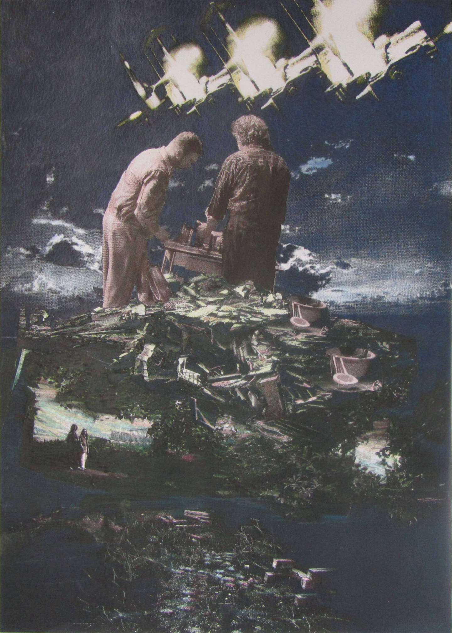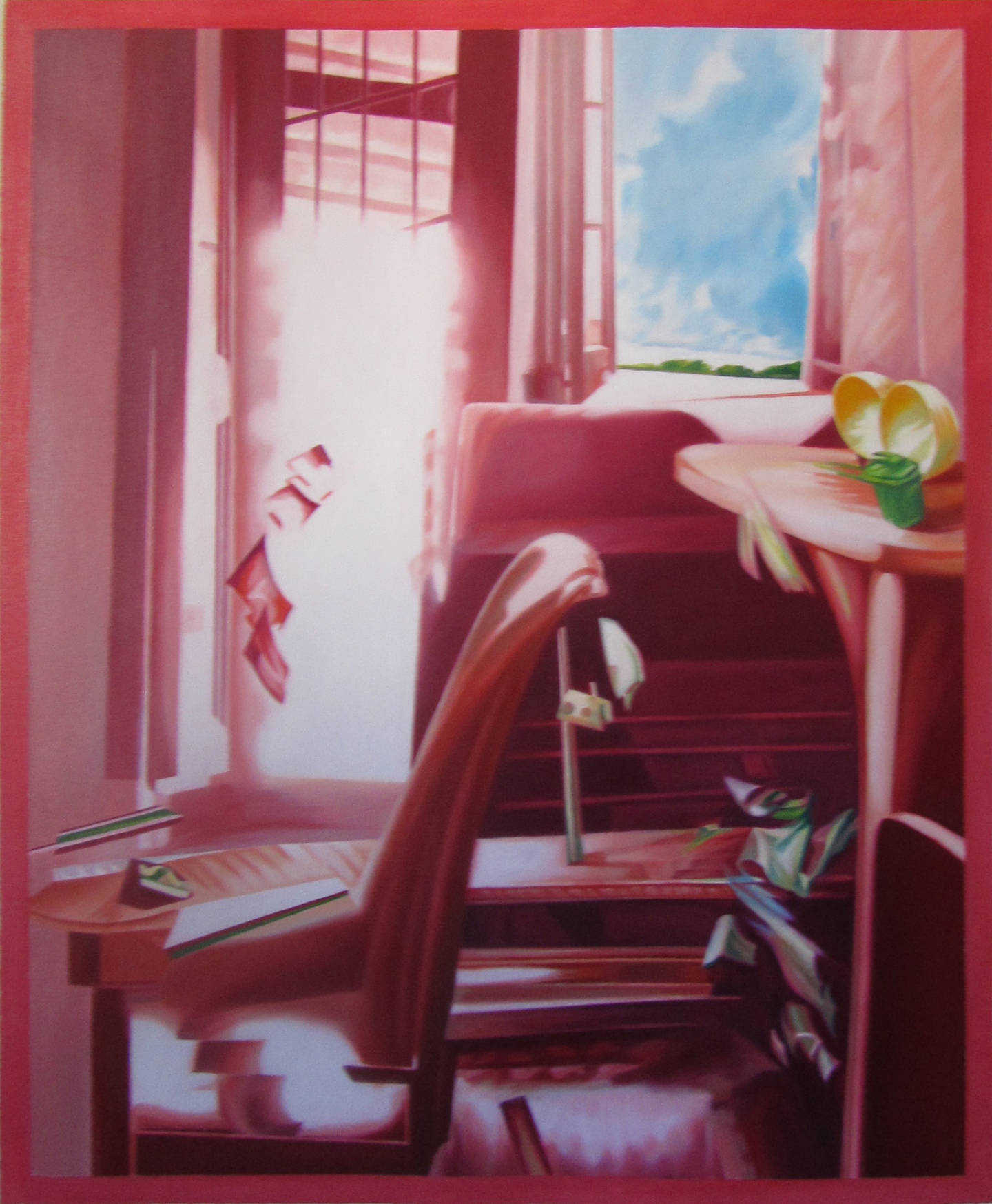 Reales und Nichtreales durchdringen sich. Eine Neigung des Bodens, die Schwerelosigkeit einer Glaswand... alles verdeutlicht uns die Relativität der Dinge, sogar die Landschaft ist nicht mehr eindeutig. Beinhaltet sie eine latente Katastrophe?